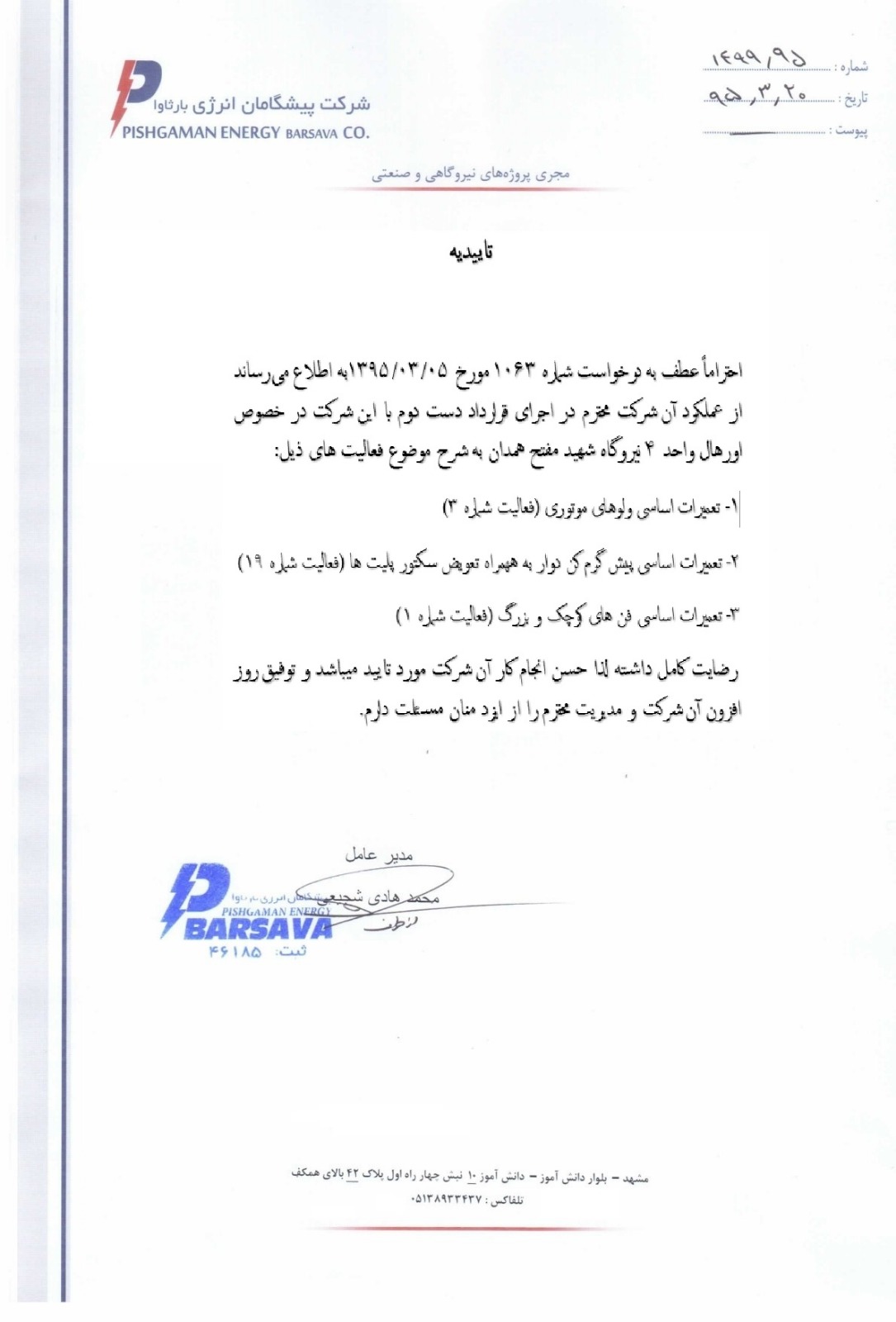 ما با دارابودن دانش فنی بالا و بهره مندی از کادر متخصص و با تجربه و همکاری با تامین کنندگان برتر در حوزه قطعات و تجهیزات نیروگاهی و ارائه خدمات در این حوزه، راه حل کامل را به مشتریان خود ارائه می دهیم و ضمانت کیفیت، سیاست تجاری ما است. کسب و کار ما بر اساس توانمندی فنی ما استوار شده است که با تعهد ما به کیفیت و رضایت مشتری، تقویت گردیده است.